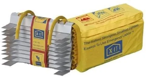 Product description: In an emergency, there's not much time to think. That's why we made the X-IT Emergency Fire Escape Ladder so lightweight and easy to use every time. The X-IT Ladder has gathered several design and safety awards for it's form, function, ease of use, and safety. It is truly the strongest, safest, smallest, and fastest escape ladder on the market, and universally rated as a better and safer product than the "old-style" chain and/or rope ladders. The X-IT Emergency Escape Ladder is tangle free, tested to 1,000 pounds, weighs less than 6 pounds, deploys in seconds, and stores to dimensions about the size of a shoe box or a 2 liter soda bottle. Keep an X-IT Fire Escape Ladder in every upper floor room. #ad